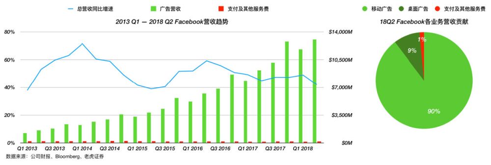 截至2018年Q2末,FB日活用户(DAU)14.7亿,月活用户(MAU)22.3亿,甚至超越中国的总人口数。