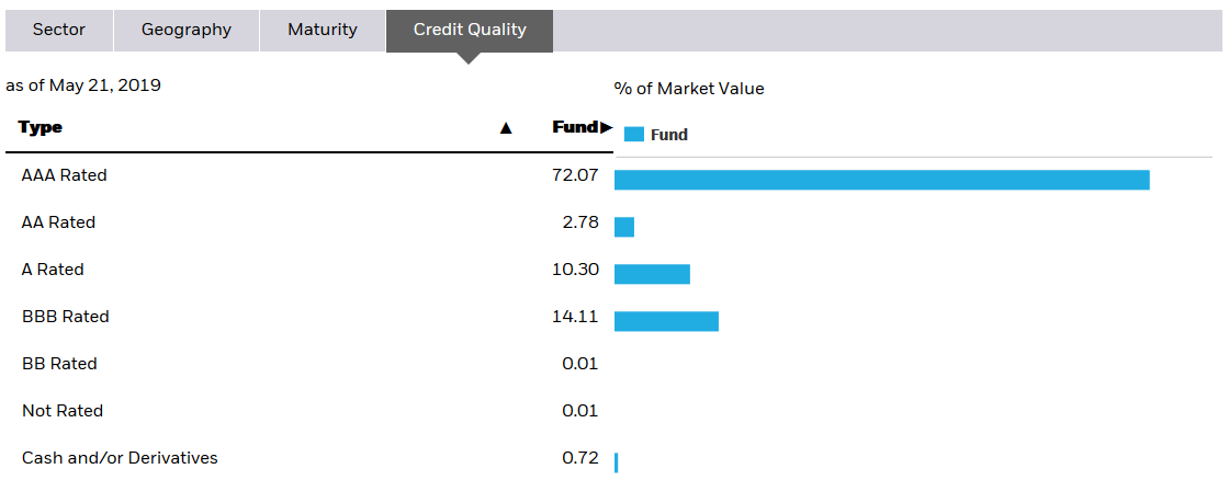 安硕核心美国综合债券iShares Core U.S. Aggregate Bond ETF(AGG)是全球最大的债券ETF,专门投资美国投资级别的债券(评级在BBB以上),包括国债、政府债、企业债和抵押担保债等证券。由于AGG的 投资范围相当广泛,持有的大部分债券在最高级别,它在很大程度上与股票ETF标普500 ETF(IVV)类似,是投资者构建长期投资组合的两大基石之一,同时也是投资者在股市风险增加时存放资金的避风港。