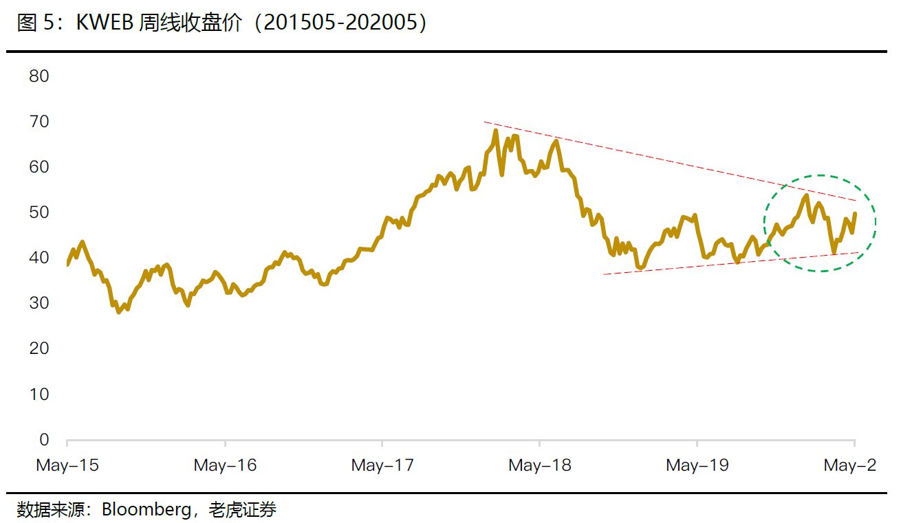 关于中概股,上周五中美贸易代表团对话积极,关税问题缓和暗示中概股整体在汇率稳定预期下,短期仍具备上升动能(图5),且中期存在来自汇率、业绩的基本面支撑。