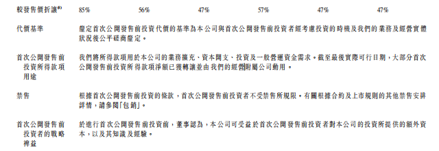 在看这个公开发售前投资者资料时发现竟然没有禁售期,吓我一跳!不过后面发现公开发售前投资者已经做出了6个月的禁售承诺(总算放心了);