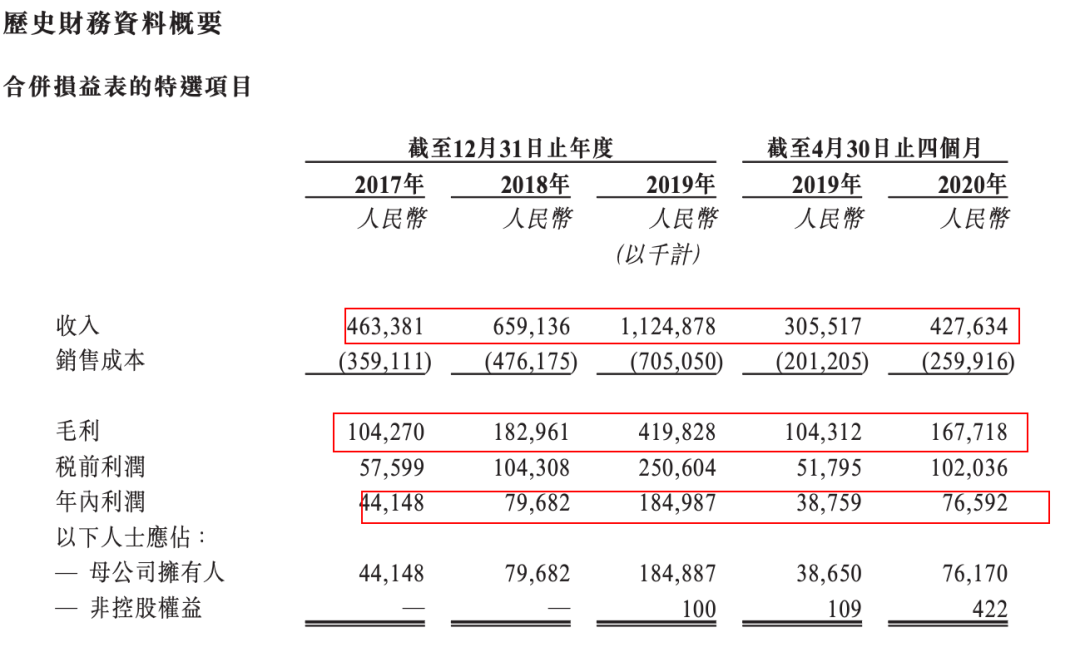 - 17至19年经调整纯利分别为4,414万人民币、7,968万亿人民币、1.88亿人民币,20年首四个月经调整纯利为8,120万人民币(若不涉及上市开支)