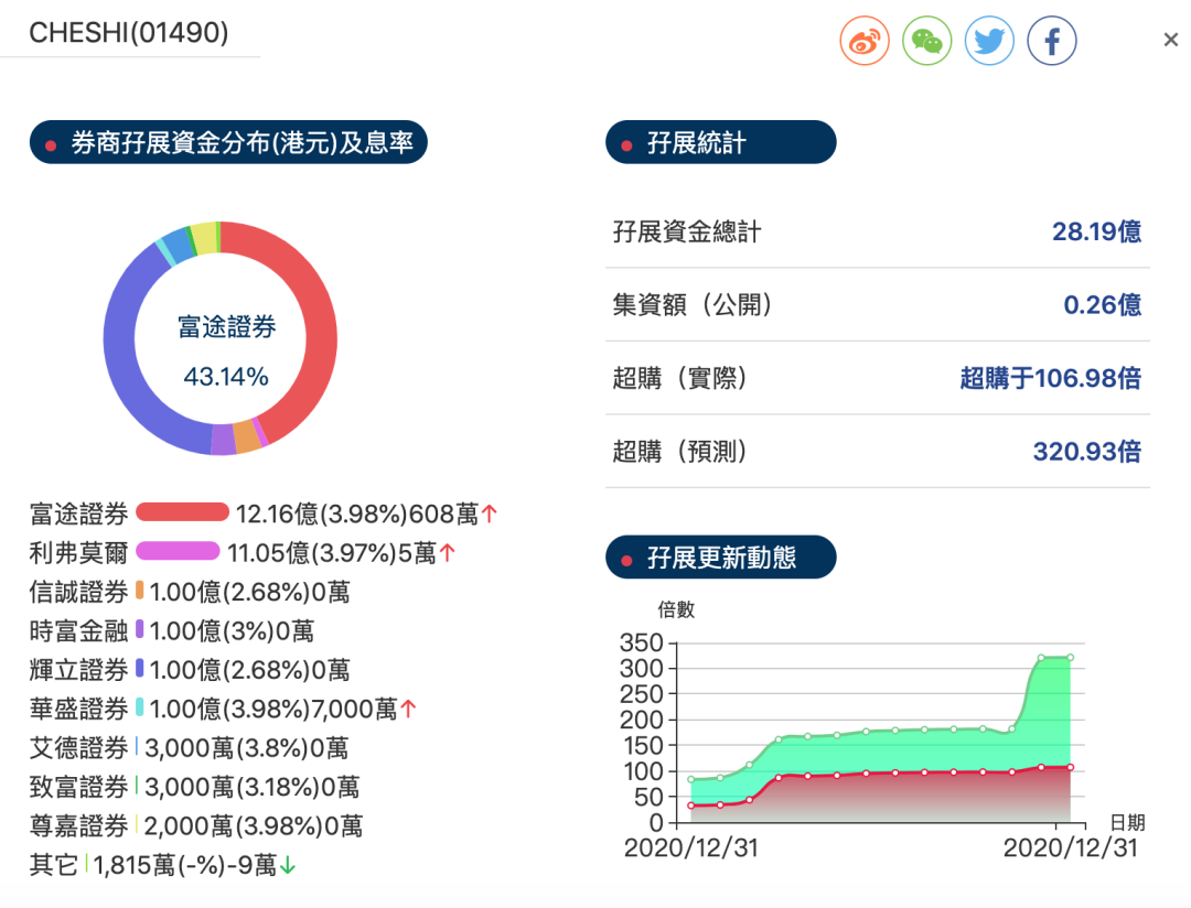 - 引入4名基石投资者,包括华泰国 、人民网、弘毅投资及嘉实国际,合共认购1,170万美元(约9,126万港元),按中间价计算,约占发售股份37.4%,设六个月禁售期