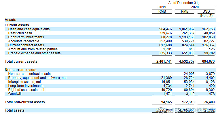 截至2020年12月31日,水滴有流动资产合计45.33亿人民币,较2019年年底24.62亿人民币增长84.12%;截止2020年12月31日,现金及现金等价物、短期投资合计22.55亿人民币,较2019年年底10.25亿人民币增长120.0%。