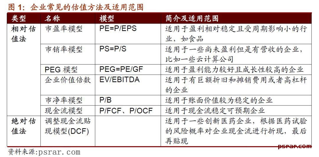 7、调整现金流贴(DCF)估值:适用于一些创新医药企业,根据医药试验的风险概率对企业现金流进行折现,最后再贴现。