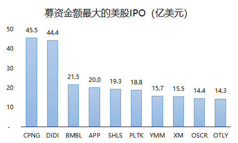 所有赴美上市公司中,募资金额最大的5家公司分别为韩国电商Coupang, Inc.(CPNG) 、中国的共享出行巨头滴滴(DIDI) 、在线约会平台Bumble Inc.(BMBL) 、游戏平台AppLovin Corporation(APP) 以及太阳能企业Shoals Technologies Group(SHLS).