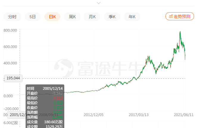 这是因为从历史价来看,历史最低价价格是将所有历史k线做前复权操作,找到最小值而推算到的。