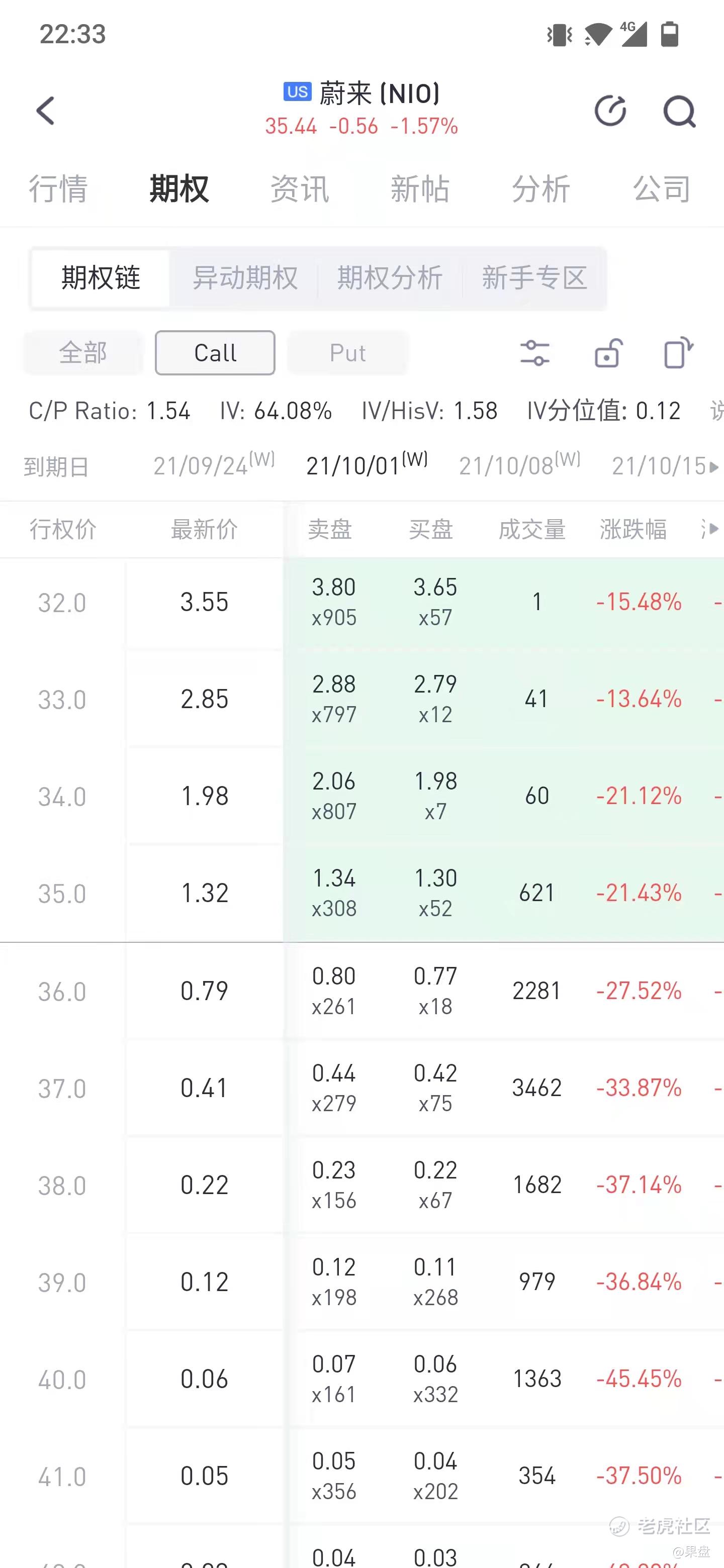 nio看涨期权的期权链