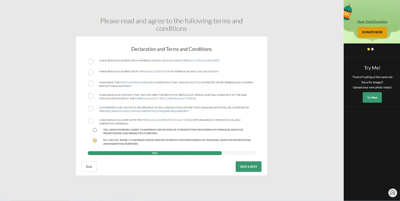 系统将会跳转至 Maybank Islamic Gold Account-i 页面。点击右上角的 Apply Now。