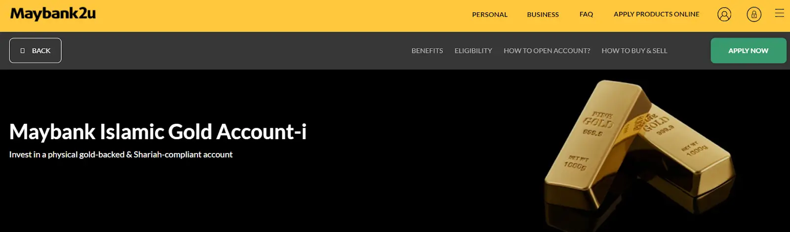 - Maybank: Maybank Gold Investment Account /Maybank Islamic Gold Account-i (MIGA-i)