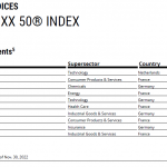 3投资欧元区蓝筹股的简单易行的方法是使用追踪 EURO STOXX 50® 指数的 ETF。该指数代表了欧元区国家基于自由流通市值的 50 家最大公司。这些公司包括科技、银行、工业品、消费品、化学品等主要行业。下图显示了行业和国家权重: 前 10 名指数成分股如下图所示: 该指数的长期收益如下图所示: SPDR® EURO STOXX 50® ETF ( FE...
