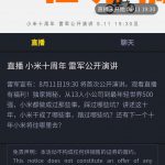 1 注册后,弹出下载app,然后登入观看。 小米集团是老虎证券第二大股东,今晚7点半,雷军十周年演讲,记得来老虎直播间哟 雷军宣布:8月11日19:30 将首次公开演讲。观看直播有福利!独家揭秘,从13人小公司到最年轻世界500强,小米都做成过那些事,踩过哪些坑?讲述这十年,小米干成了哪些事,踏过哪些坑?还有下一个十年小米将往哪里去?