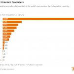 1根据世界核协会的数据,2019 年铀资源最多的五个国家是澳大利亚、哈萨克斯坦、加拿大、俄罗斯和纳米比亚。据估计,俄罗斯拥有世界供应量的约 5%。 下图显示了 2021 年全球最大的铀生产国: